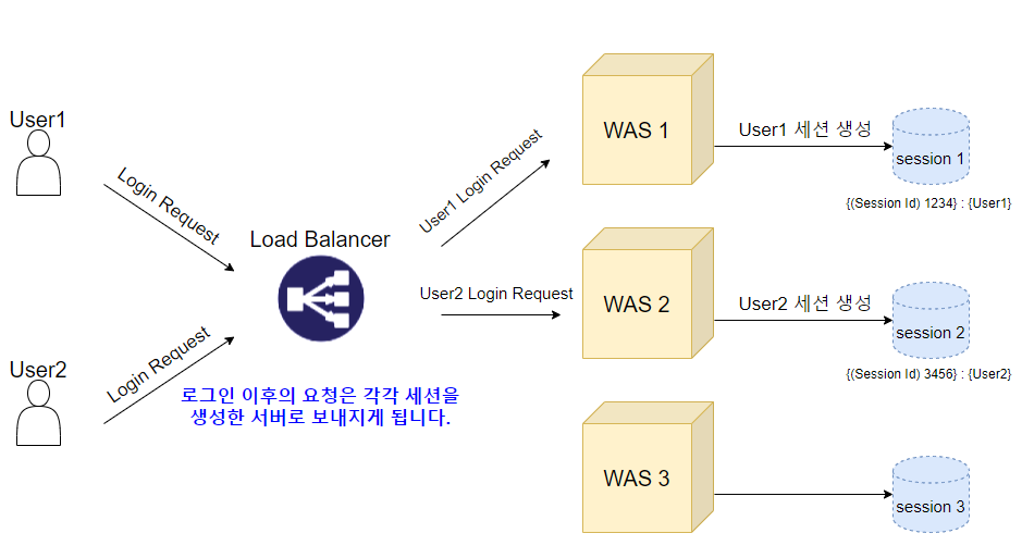 - 사용자는 세션이 유지되는 동안 단일 서버만을 사용